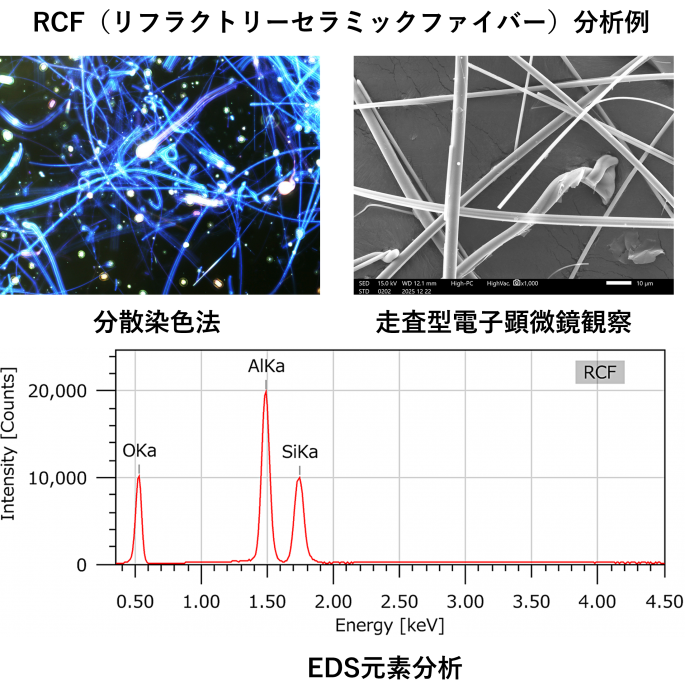 位相差分散顕微鏡、走査型電子顕微鏡による元素分析を組み合わせて、RCFの有無を判定いたします。